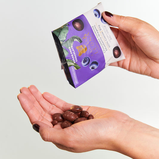Grageas de arándanos recubiertas con chocolate