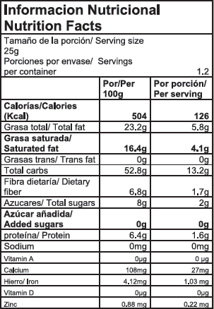 Ingredientes: masa de cacao, alulosa, avena y gulupa.