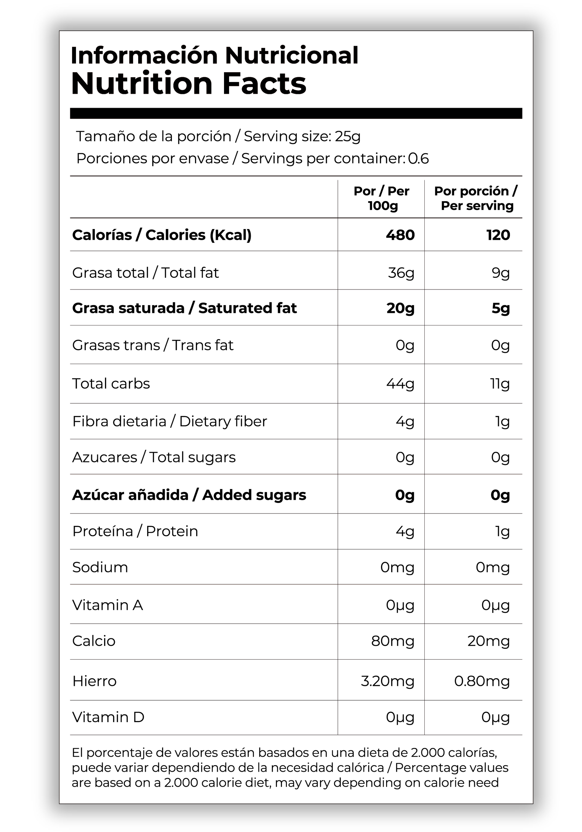 Beneficios: sin azúcar añadida, libre de gluten, vegano, ingredientes naturales.